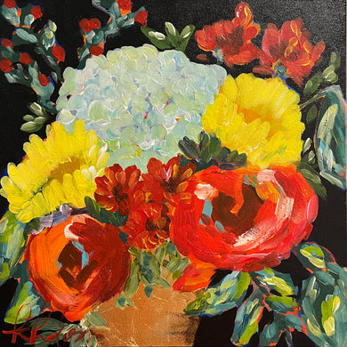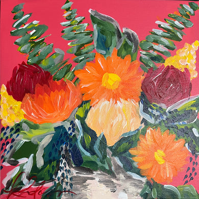 I paint whatever I’m in the mood for — abstracts, botanicals, cocktails, florals — anything that feels joyful and full of life. My art doesn’t take itself too seriously, and neither do I. Every piece is meant to be the exclamation point in a room — bright, bold, and never boring.