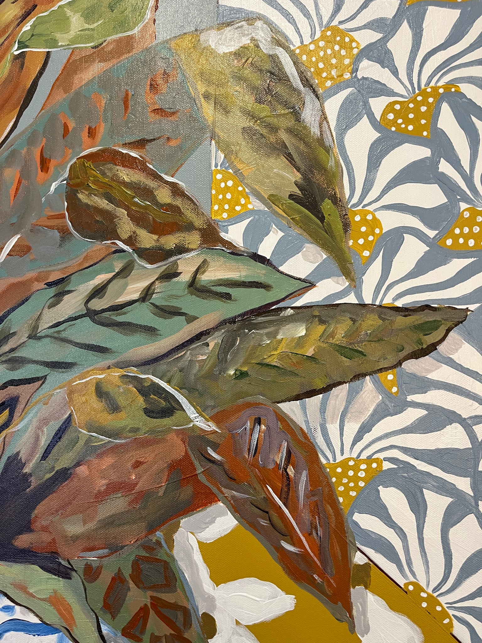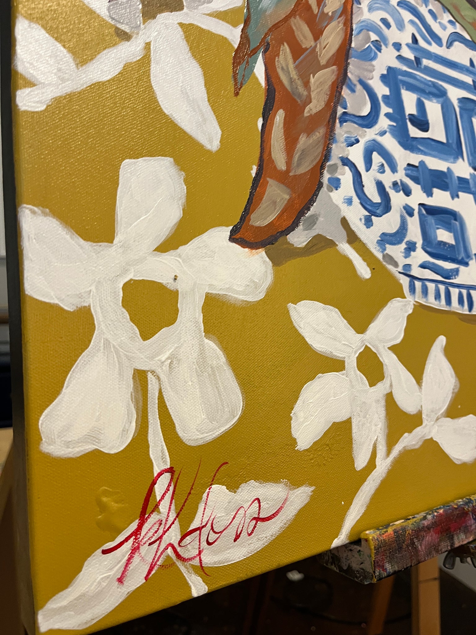 Canvas is 30"x40”. Wired hanger. Acrylic on canvas.