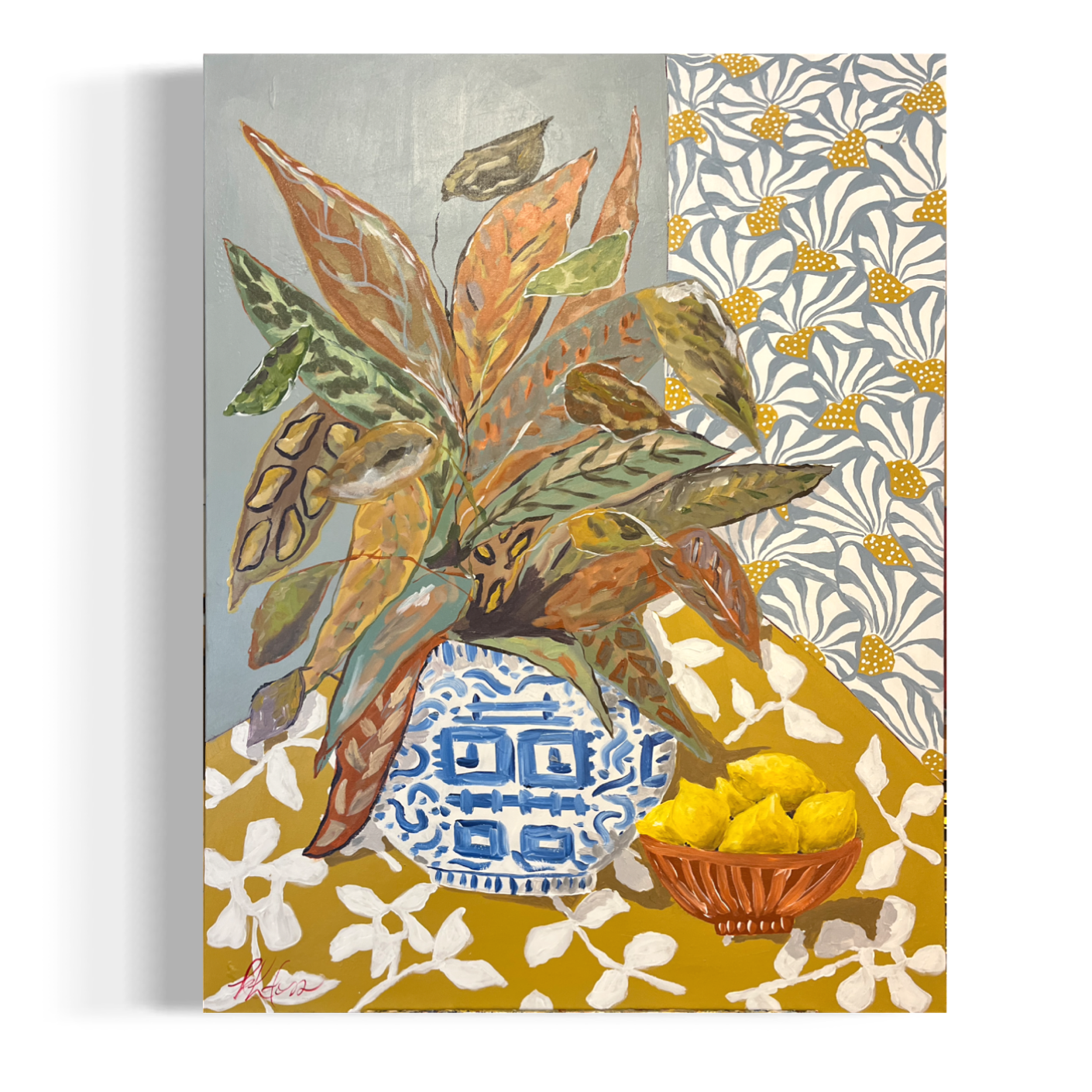 “Could Use a Round of Basic Inoculations“ - you may know someone who fits that description. I certainly do. With a mix of patterns from the wallpaper, tablecloth, and vase, this botanic has a subtle color palette perfect to complement a varieties of decor.